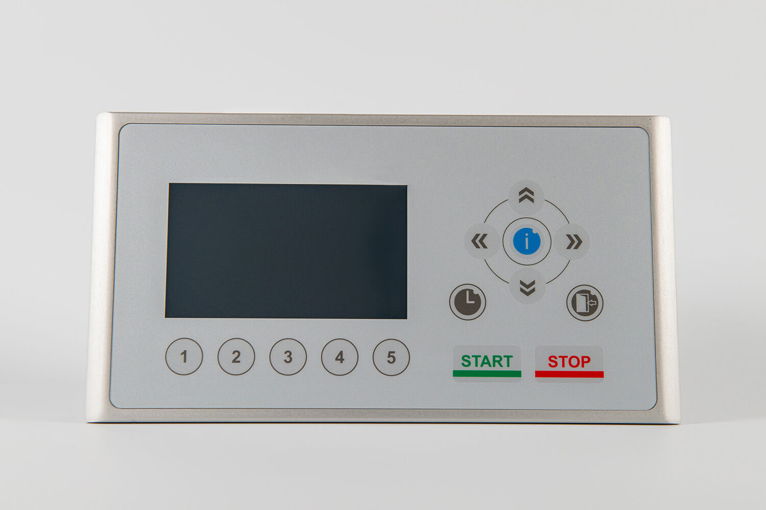 Um die Bedienungsschritte zu erleichtern, werden die wesentlichen Tasten außerhalb des kapazitiven Touchdisplays gelegt. Auch diese Tastenfelder werden durch rückseitige LED‘s, welche auf der Leiterplatte bestückt sind, beleuchtet. Die Leiterplatte wird auf ein separates „Ausleucht“-Gehäuse montiert. Hierbei ist es nicht notwendig, die auf der Leiterplatte integrierte Ansteuerungselektronik zu ändern, sondern es können die zuvor eingesetzten mechanischen Tasten auf eine kapazitive Bedienung angepasst werden.